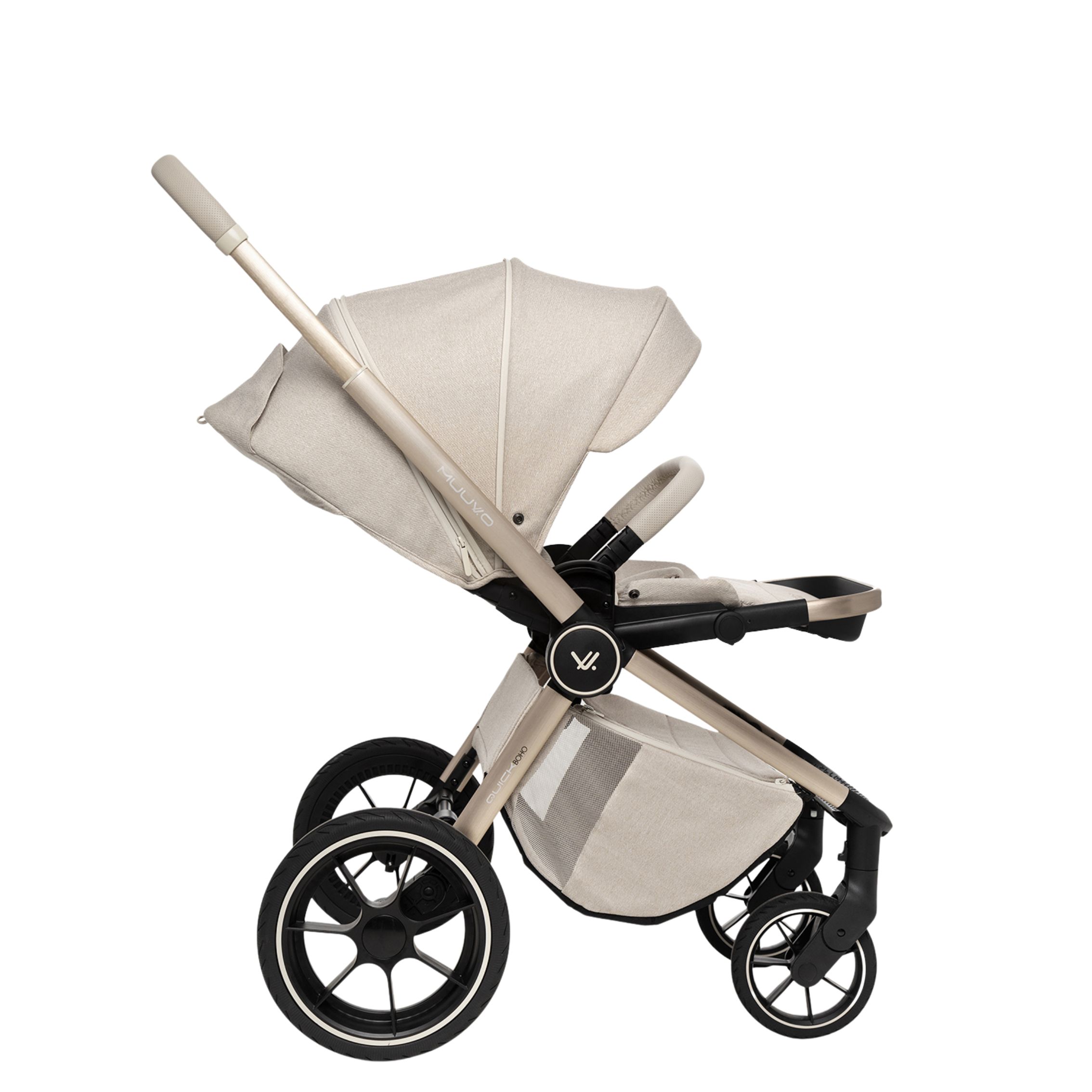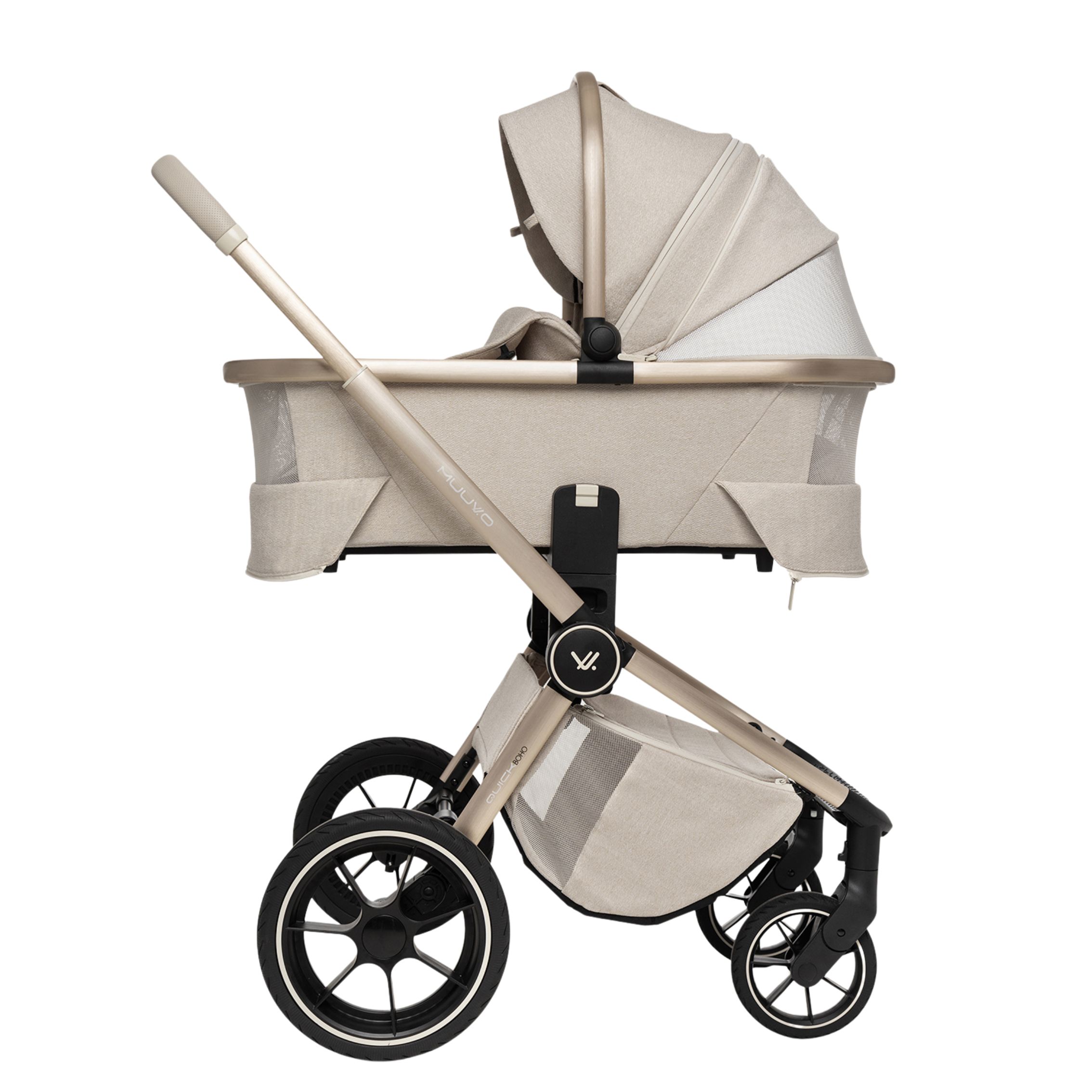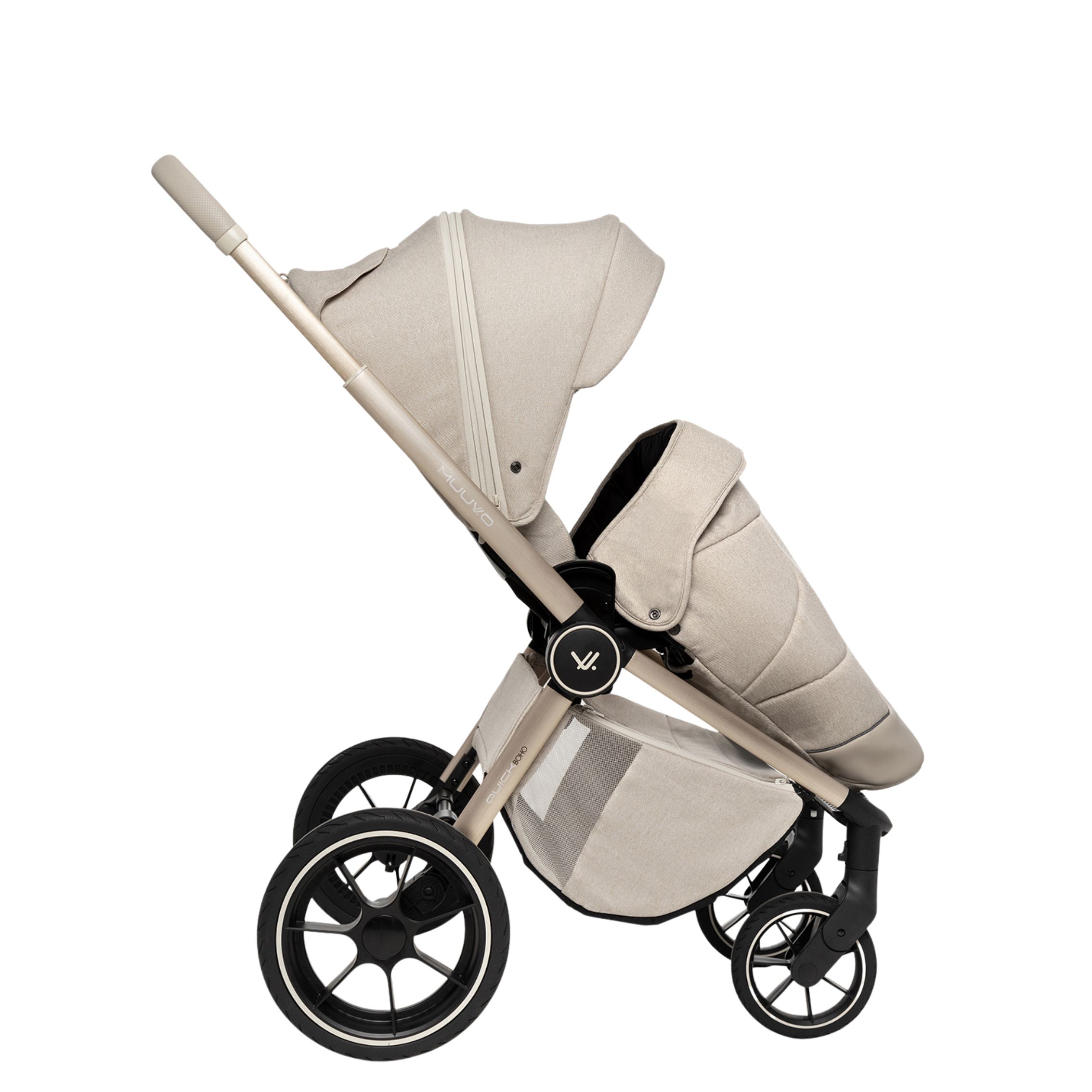Quick BOHO je nova različica najbolj prodajanega modela MUUVO, v kateri se elegantna, bež tkanina prepleta z izvirnimi detajli v stilu BOHO. Dostopen v dveh različicah, v katerih se bež in rjavi detajli prepletajo in ustvarjajo popolne kombinacije.