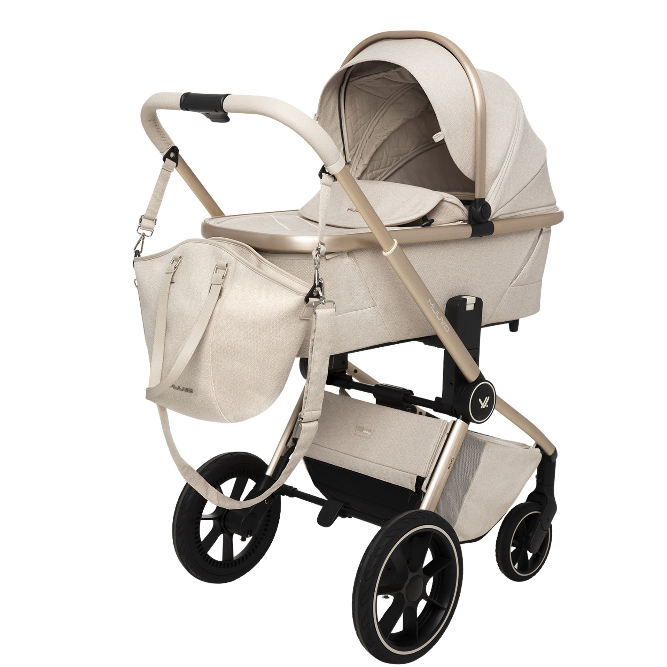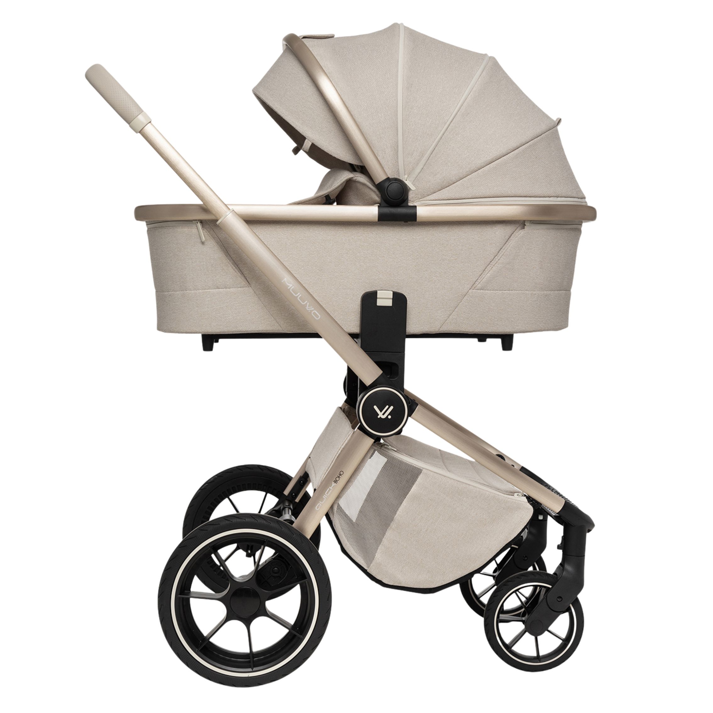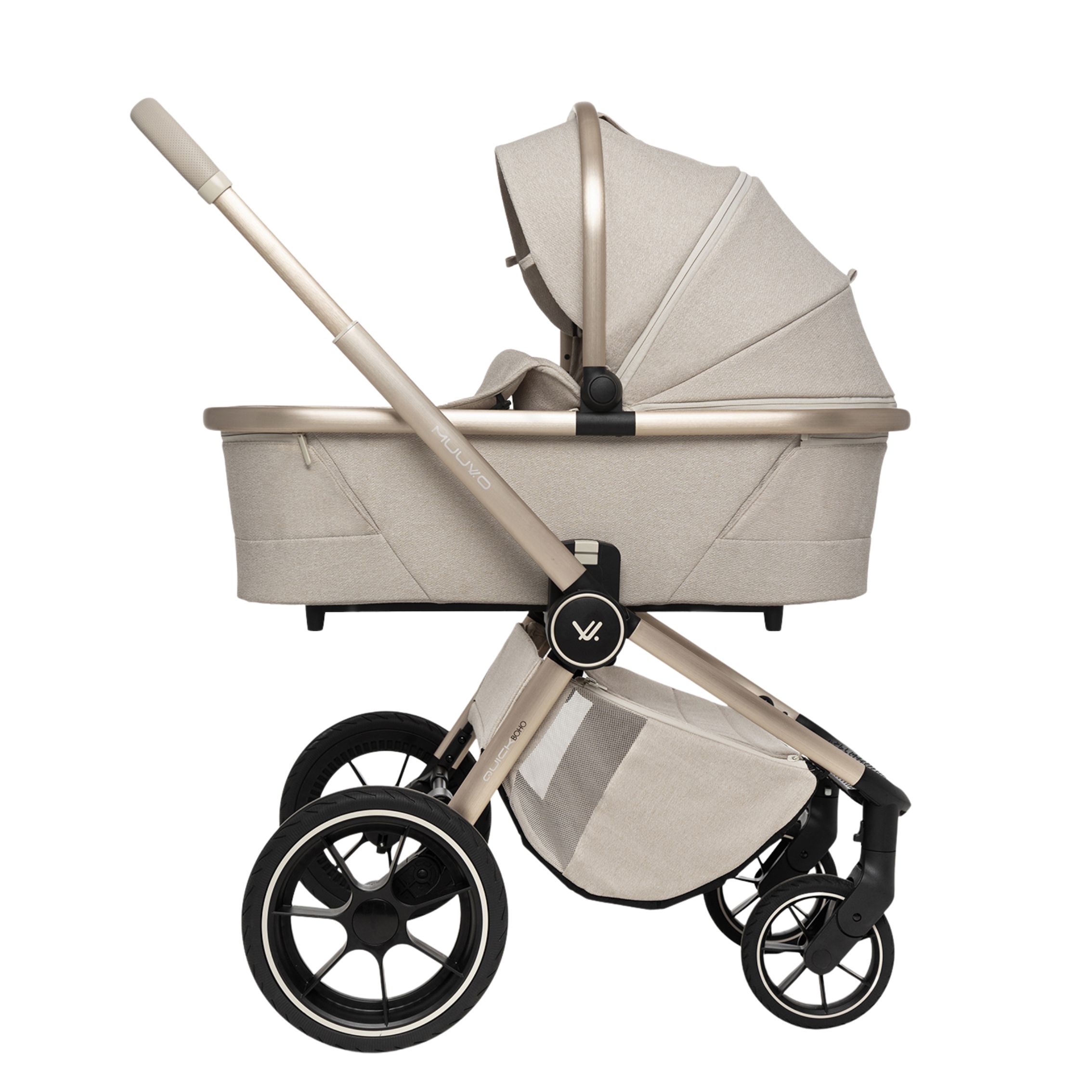 Quick BOHO je nova različica najbolj prodajanega modela MUUVO, v kateri se elegantna, bež tkanina prepleta z izvirnimi detajli v stilu BOHO. Dostopen v dveh različicah, v katerih se bež in rjavi detajli prepletajo in ustvarjajo popolne kombinacije.