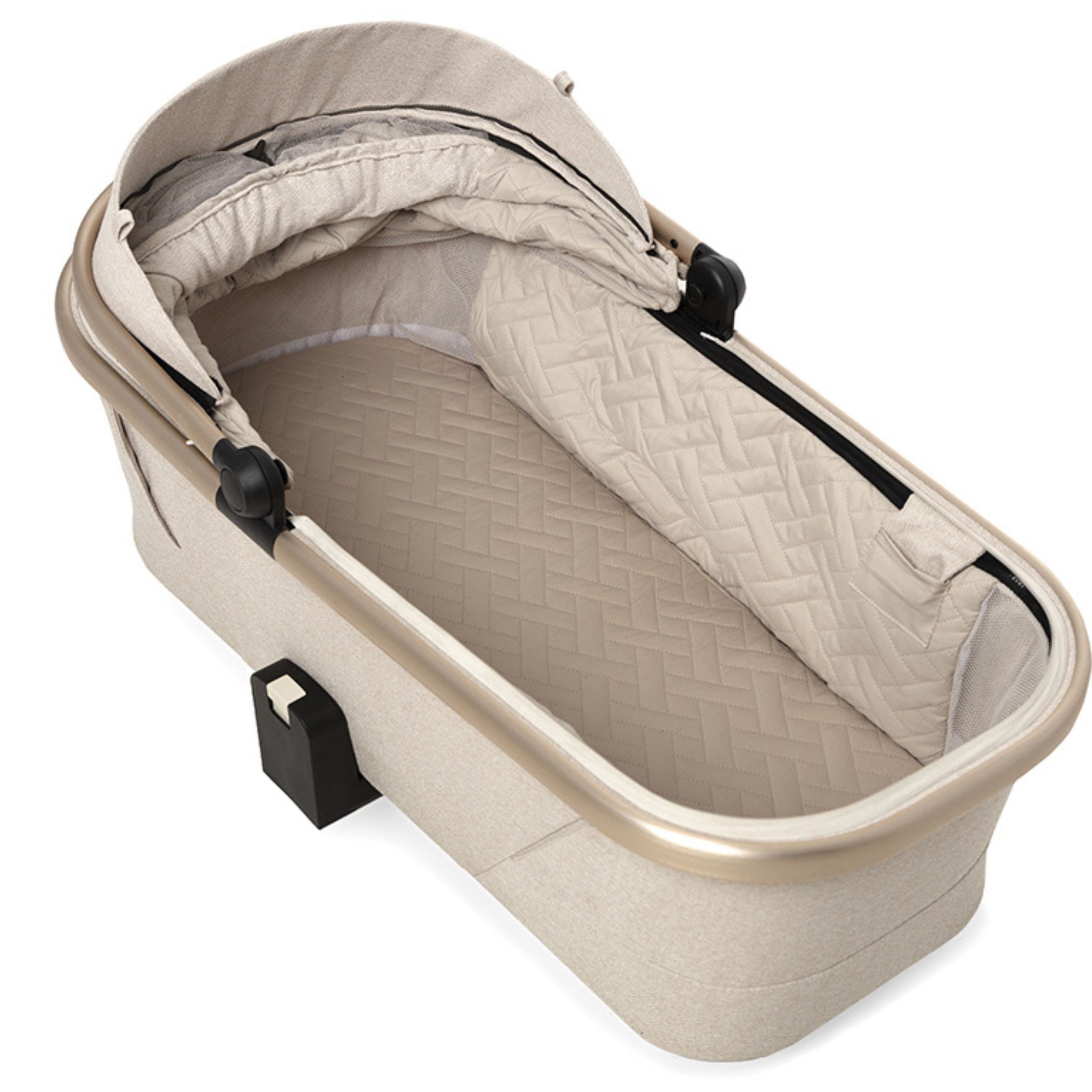 Prostorna gondola s sistemom gumbov s spominsko funkcijo in AIRFLOW 3D, torej triconskim, panoramskim prezračevanjem, vgrajenim komarnikom in solarnim vizirjem na zadrgo; se lahko namesti neposredno na okvir in na adapterje za dvig.